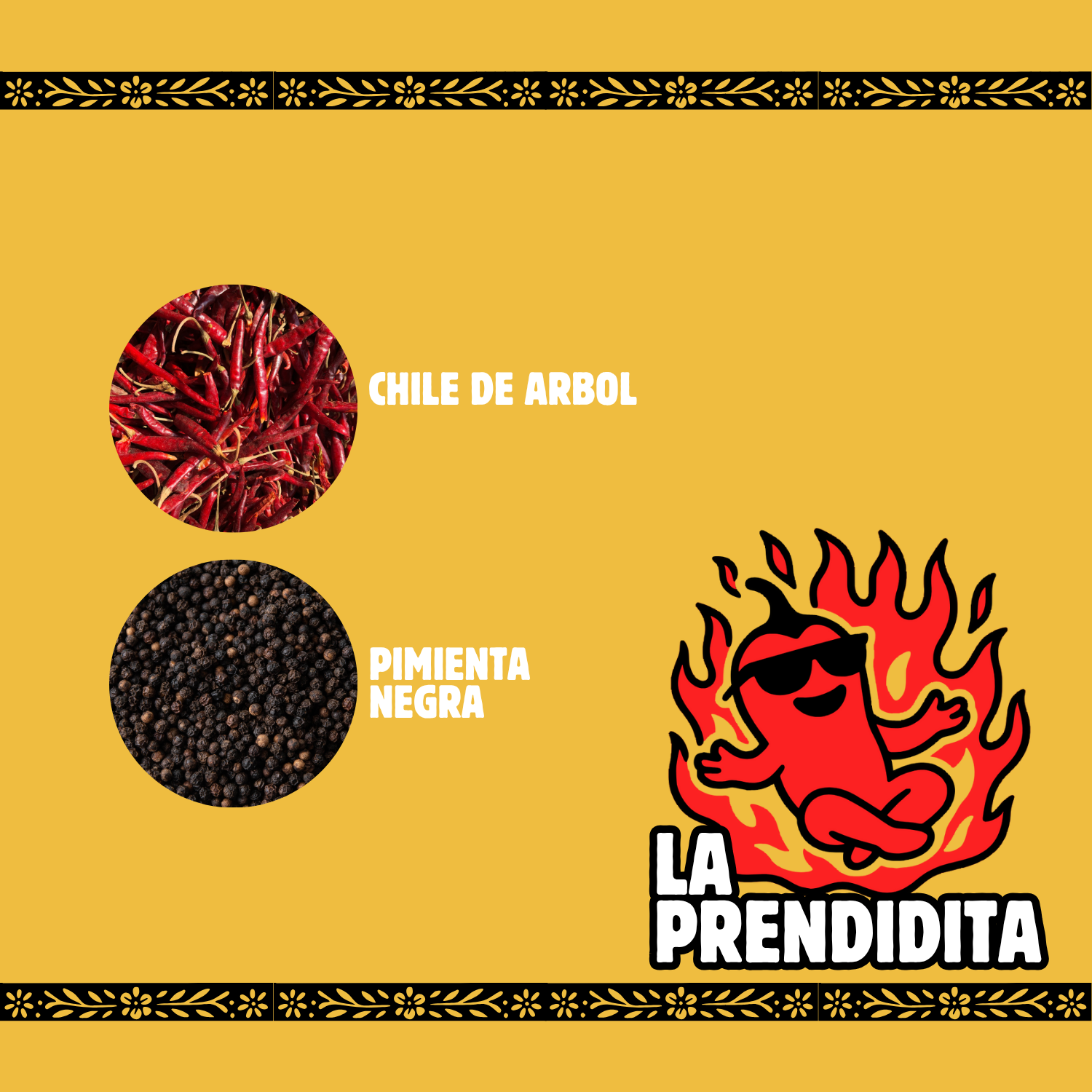 Usamos puro chile de árbol de ese que sí pone a prueba tu mexicanidad, pero equilibrado con el toque exacto de pimienta negra para que no pierdas el sabor por el picor.